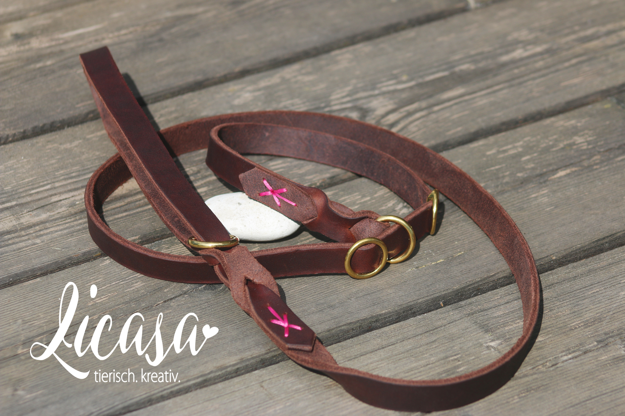 In sachkundigem Handwerk werden diese einzigartigen, weichen Leder-Leinen aus Fettleder für Ihren Liebling maßgenau gefertigt.