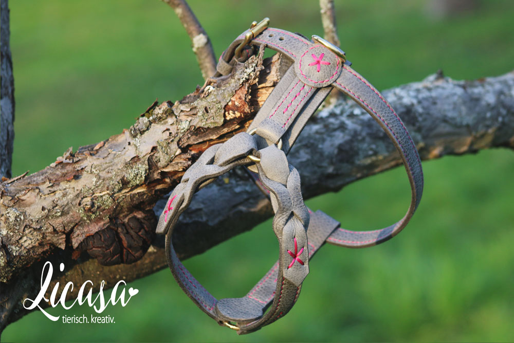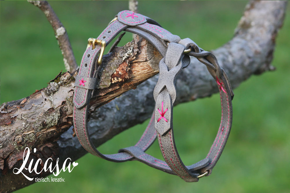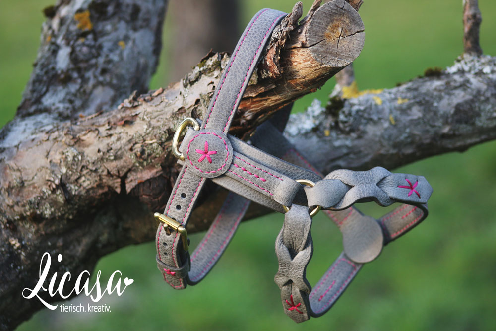 In sachkundiger Handarbeit mit viel Liebe und Sorgfalt zum Detail werden diese einzigartigen Geschirre aus ausgewähltem, fettgegerbtem Rindleder in der gewünschten Größe, passgenau gefertigt. Alle Teile sind hochwertig genäht und verarbeitet, ebenso werden Beschläge (Ringe & Bolzenkarabiner) aus rostfreiem Edelstahl oder Messing verwendet.