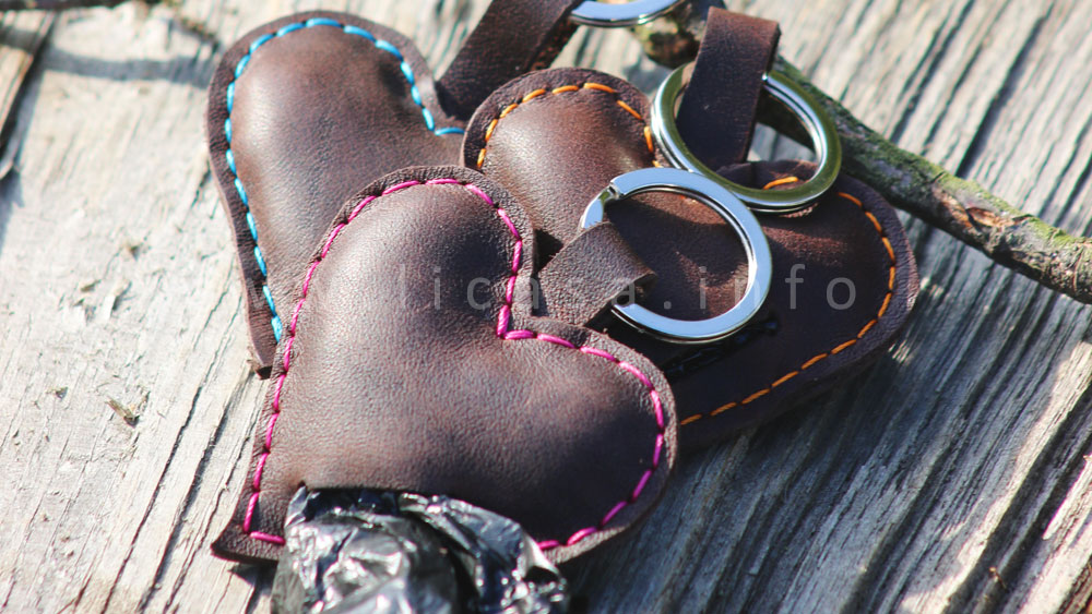 Wahlweise können die Anhänger auch mit Karabiner gefertigt werden, so dass das Herz auch an der Leine oder an einer Tasche befestigt werden kann.