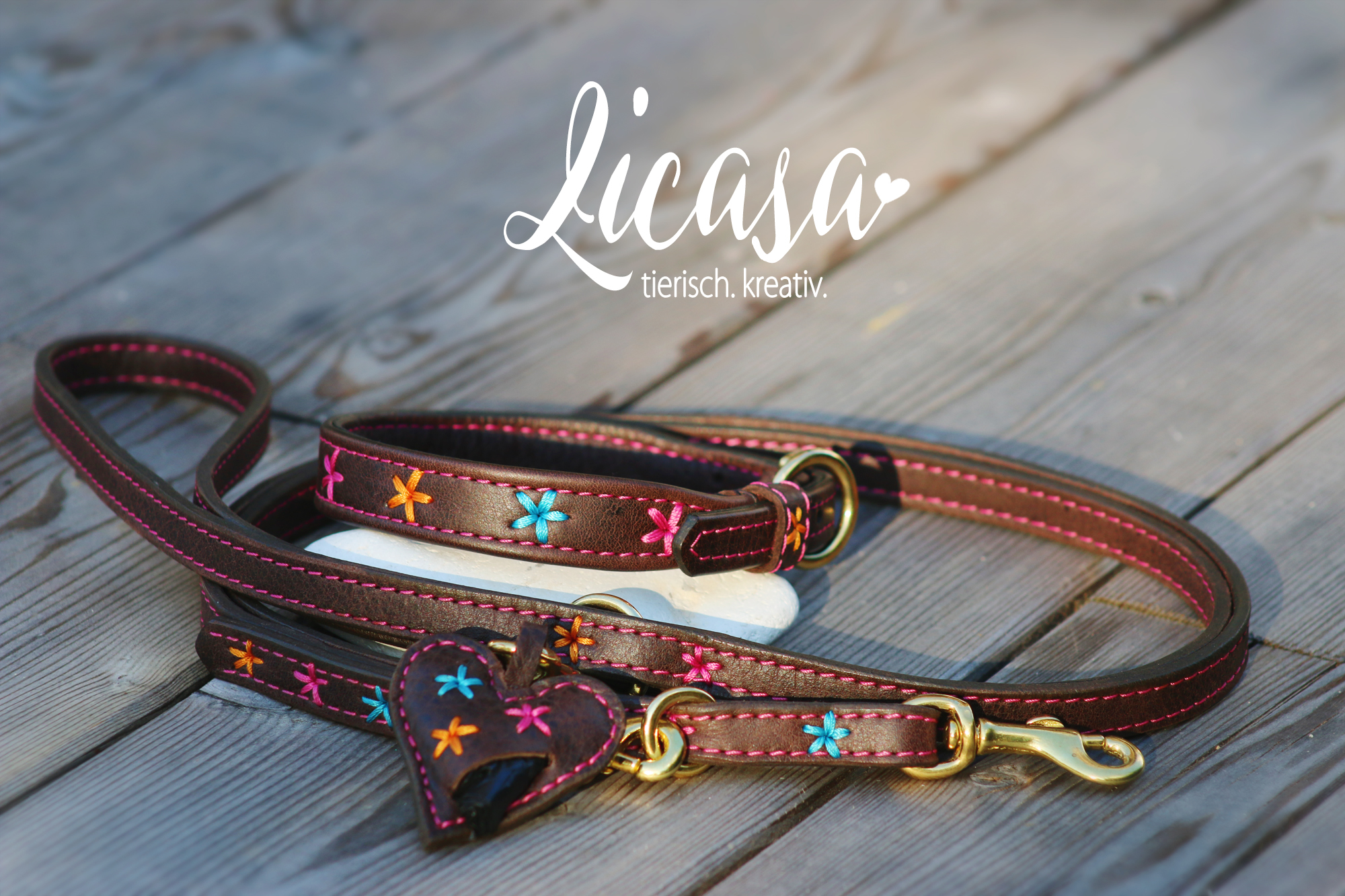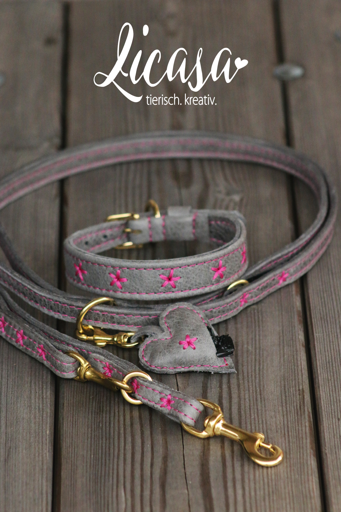 Mobile Preview: flache Lederleine mit Sternchen nicht verstellbar