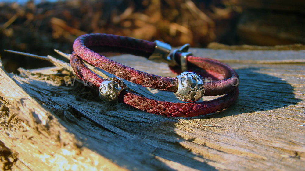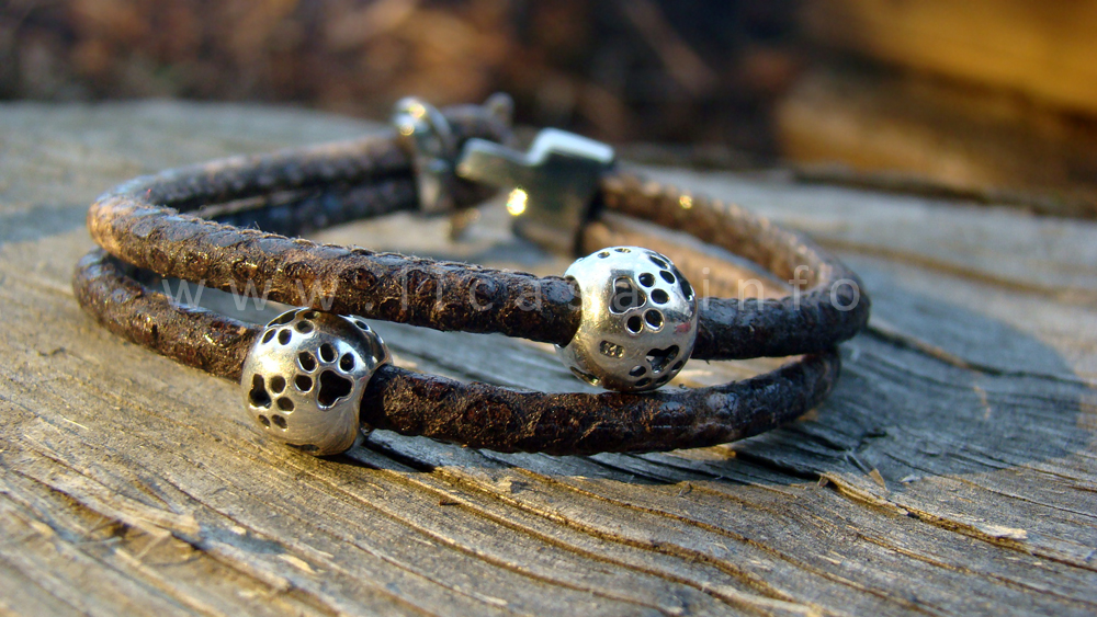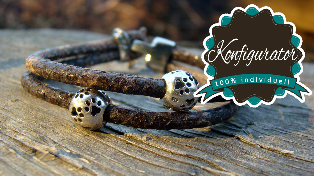 Lederarmband in Schlangenoptik mit Pfotenperlen
