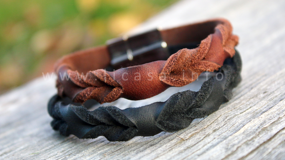 Fettlederarmband mit Edelstahlschließe in braun oder schwarz mit Stern