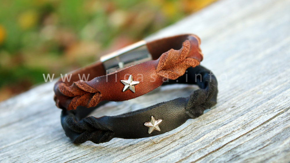 Ein aus weichem Fettleder gearbeitetes Armband, das durch seinen rustikalen Charme besticht. Ein kleiner Stern, in der Mitte angebracht, setzt einen hübschen Akzent. Verschlossen wird dieses Schmuckstück mit einer flachen Edelstahl-Magnet-Schließe.