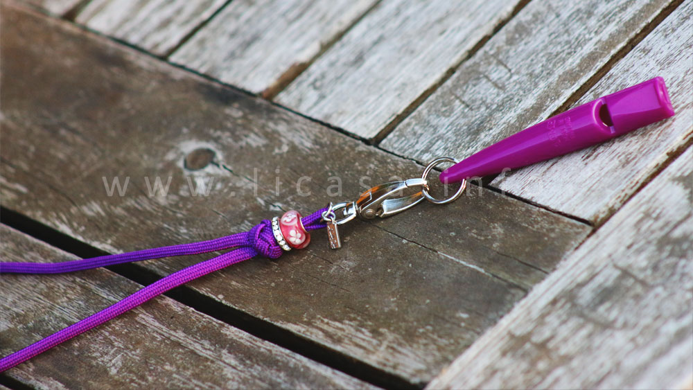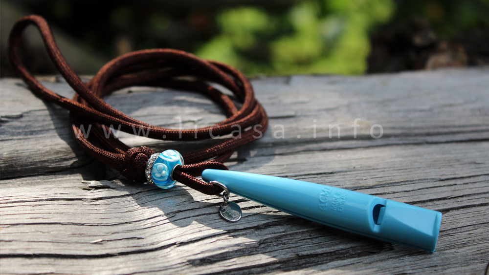 Am formschönen Karabiner kann eine bereits vorhandene Pfeife eingehängt werden oder eine unserer, farblich passenden, ACME Pfeifen.