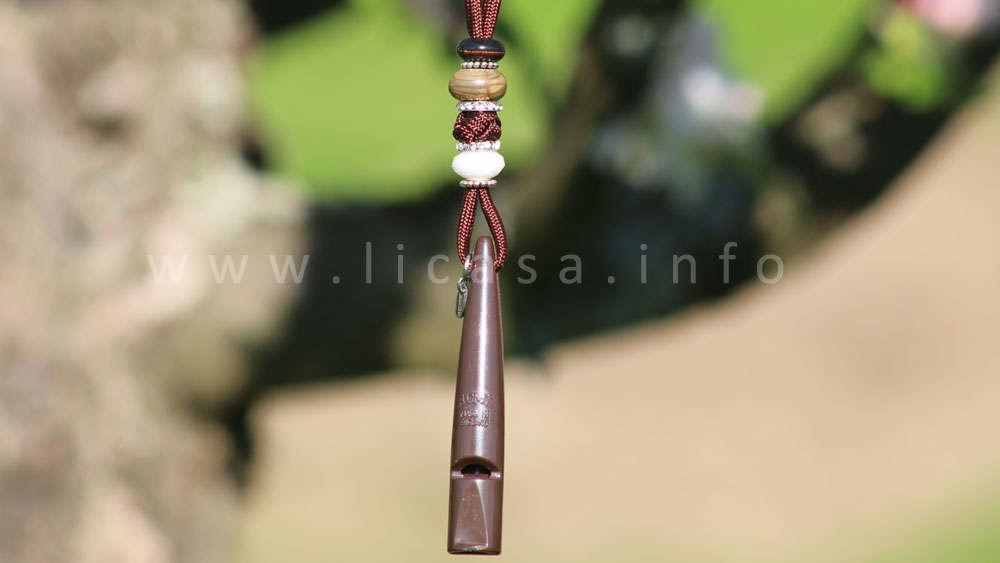 Am formschönen Karabiner kann eine bereits vorhandene Pfeife eingehängt werden oder eine unserer, farblich passenden, ACME Pfeifen.