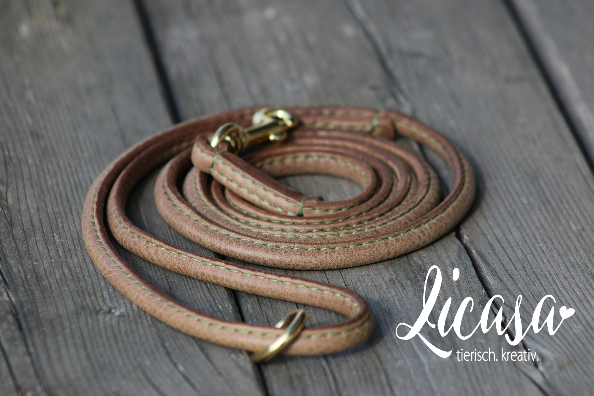 In sachkundiger Handarbeit mit viel Liebe und Sorgfalt zum Detail werden diese einzigartigen Leinen aus ausgewähltem, fettgegerbtem Rindleder in der gewünschten Länge gefertigt. Alle Teile sind hochwertig genäht und verarbeitet, ebenso werden Beschläge (Ringe & Bolzenkarabiner) aus rostfreiem Edelstahl oder Messing verwendet.