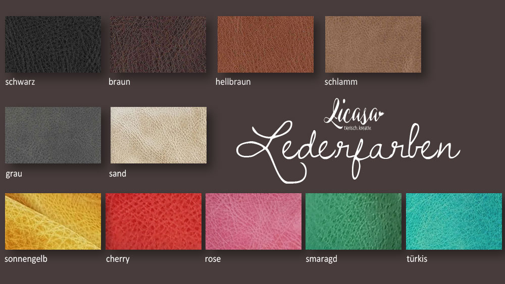 Diese Leine ist in 11 verschieden Lederfarben und 24 Nahtfarben erhältlich.