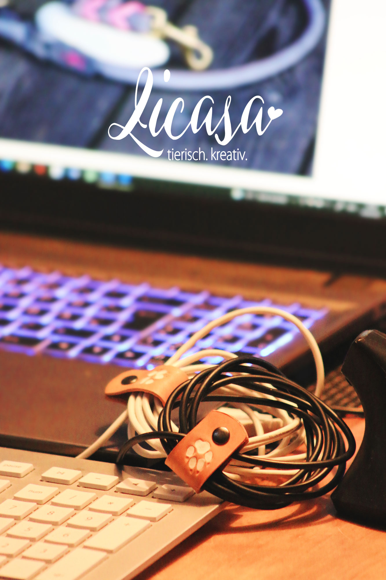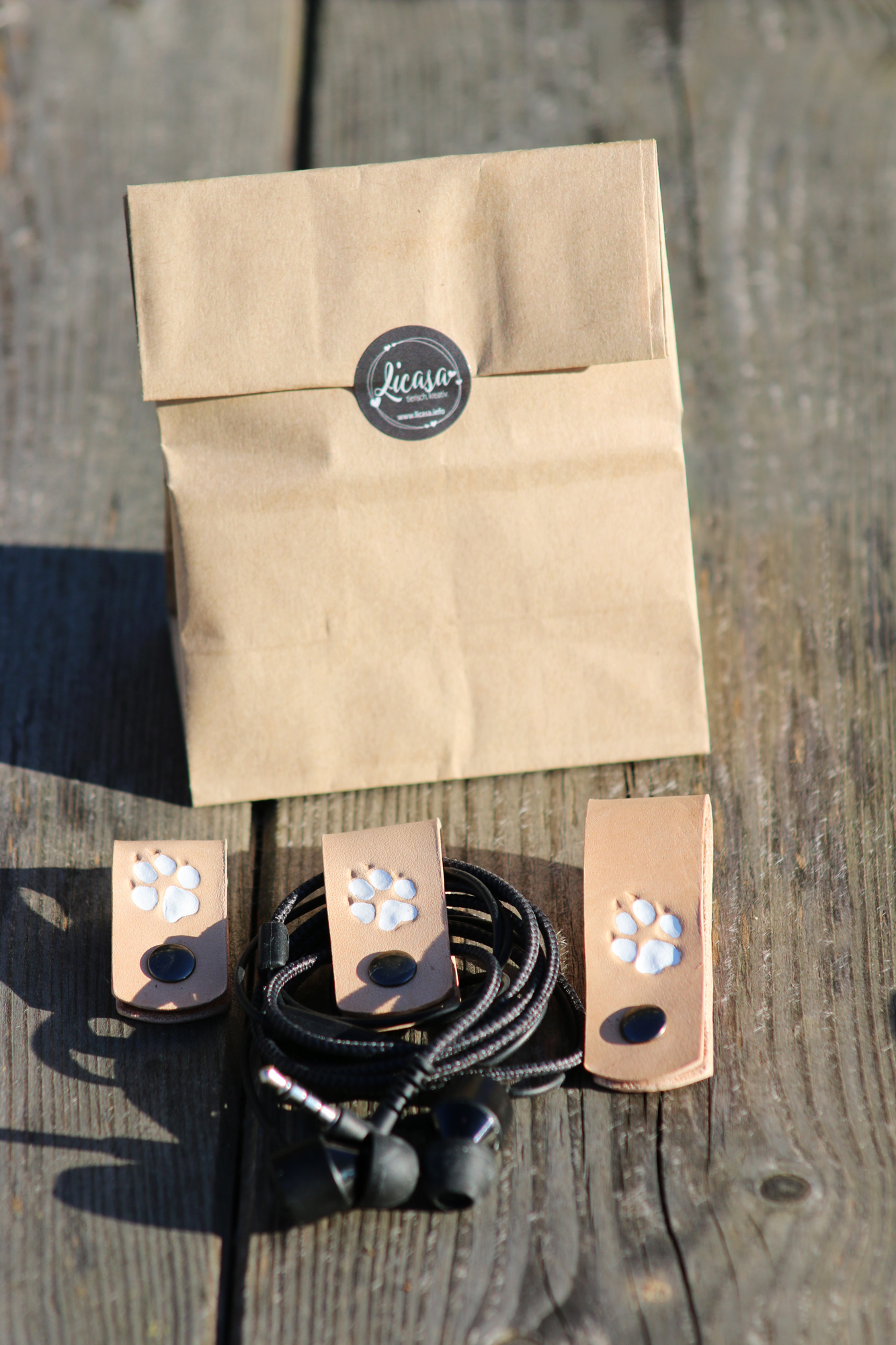 3er Set Kabel Organizer in 3 verschiedenen Größen. Gefertigt in hochwertiger Handarbeit mit weißen Hunde-Pfoten, die geprägt und gemalt wurden.