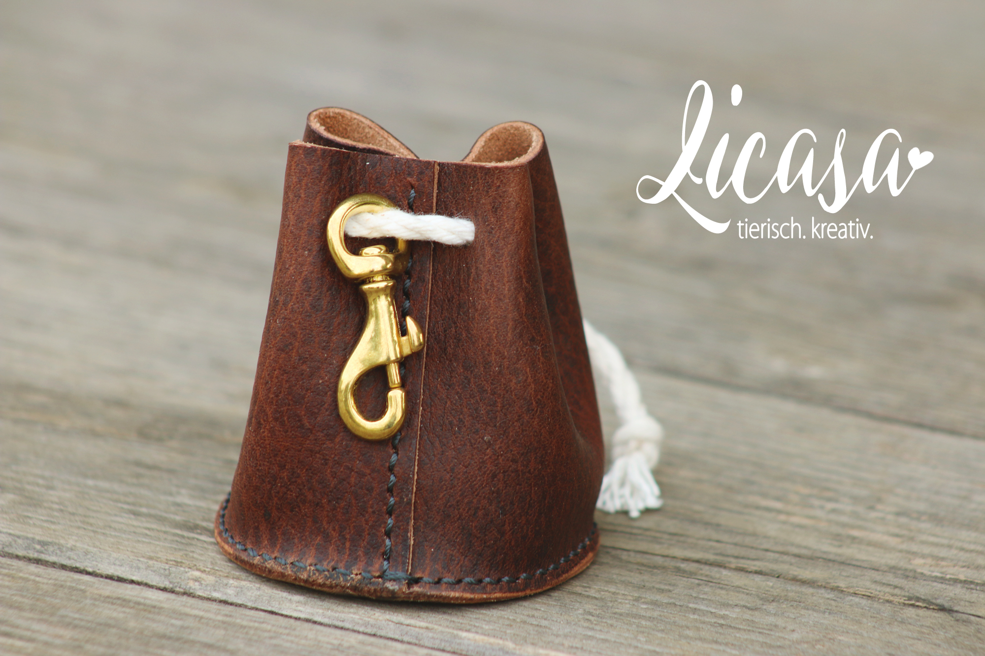 In diesensüßen, kleinen Beutel, gefertigt aus hochwertigem, in Deutschland produziertem Rindleder, passt so einiges: Eine Rolle Kotbeutel oder auch Schlüssel, Notgroschen, Lecker,....