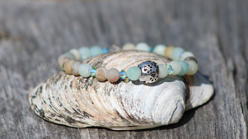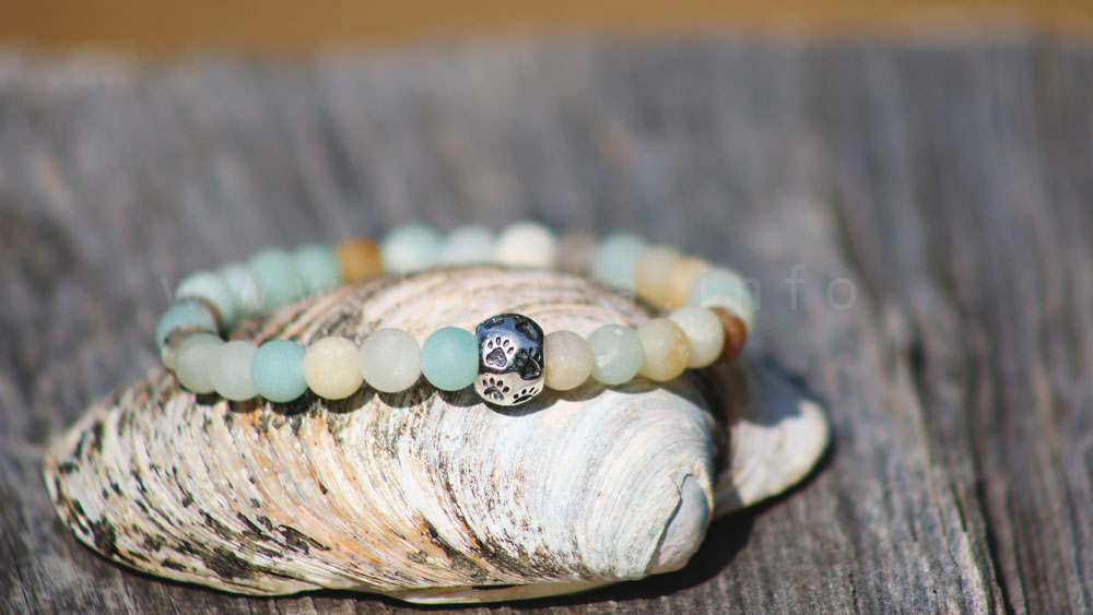 Ausgedehnte Spaziergänge mit vierbeiniger Begleitung. Dieses Amazonit Armband birgt Erinnerungen an Strand, Meer unbeschwerte Zeiten.