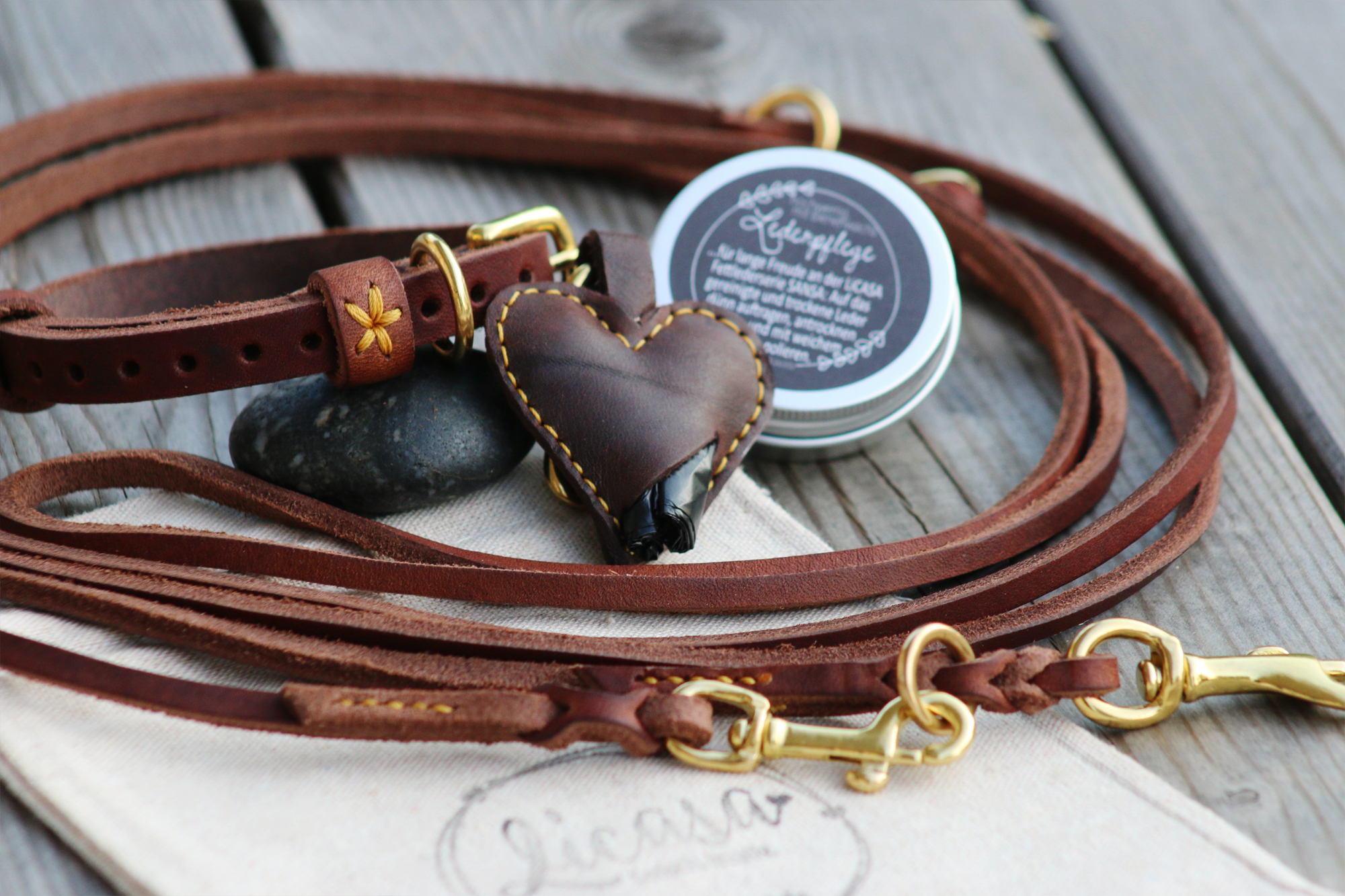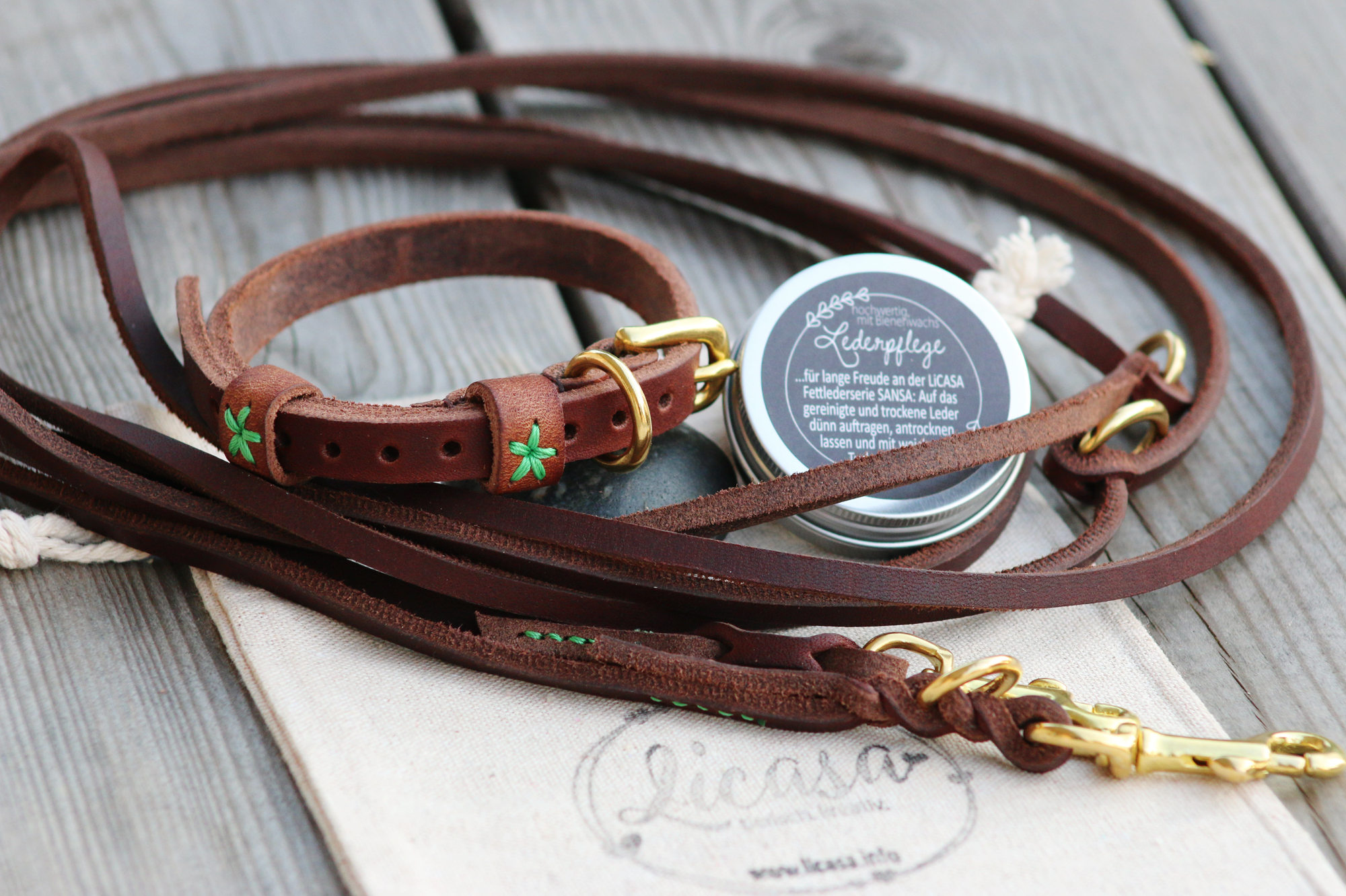 Das LiCASA Welpenset ist in schlichtem Schick gehalten. Die Naht kann passend zum Leder oder in einer der vielen Farben gewählt werden.